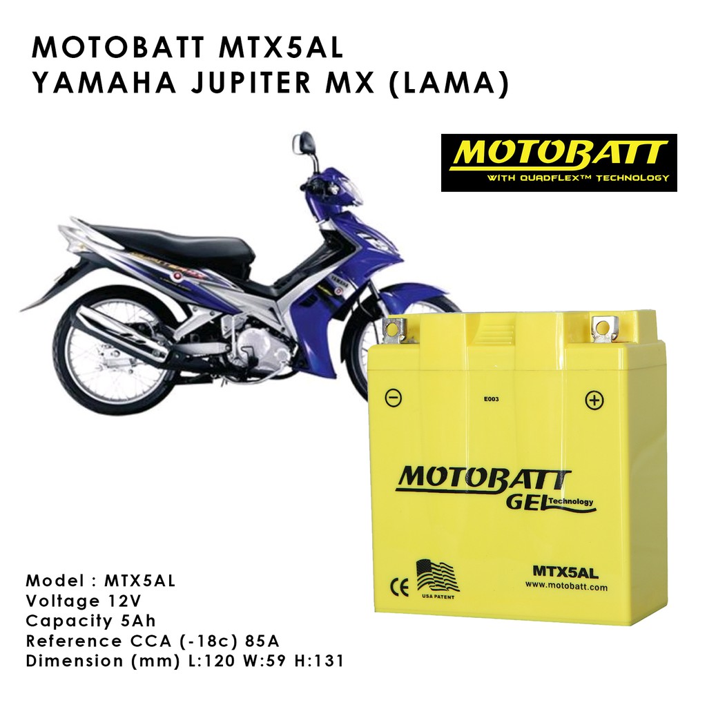 Jual Aki Motor Yamaha Jupiter MX 135 lama Motobatt MTX5AL GM5Z dengan harga Rp182000 dari toko online OnlineShop20 Kota Bekasi. Cari produk Aki Motor lainnya di Tokopedia. Informasi terlengkap tentang Aki Yang Cocok Untuk Jupiter Mx Old.
